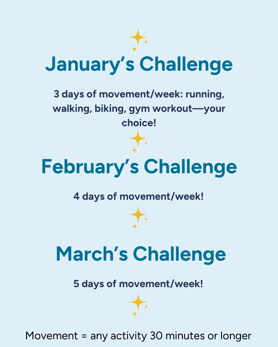 Starting January 1st-March 31st, commit to movement challenge with us!