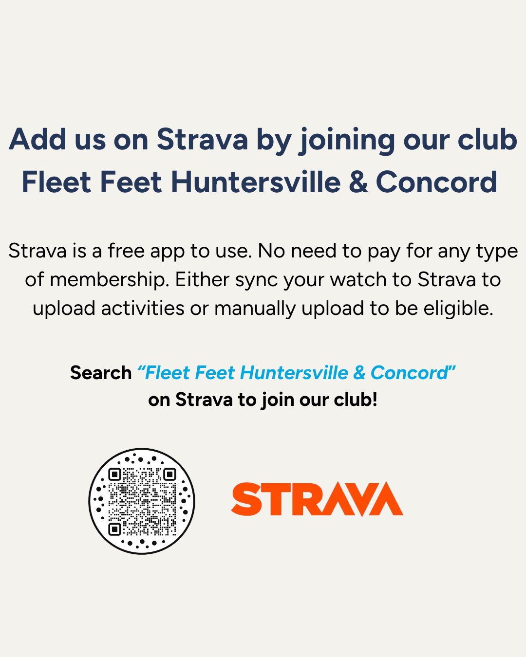 Join our Strava club here: Fleet Feet Huntersville & Concord on Strava