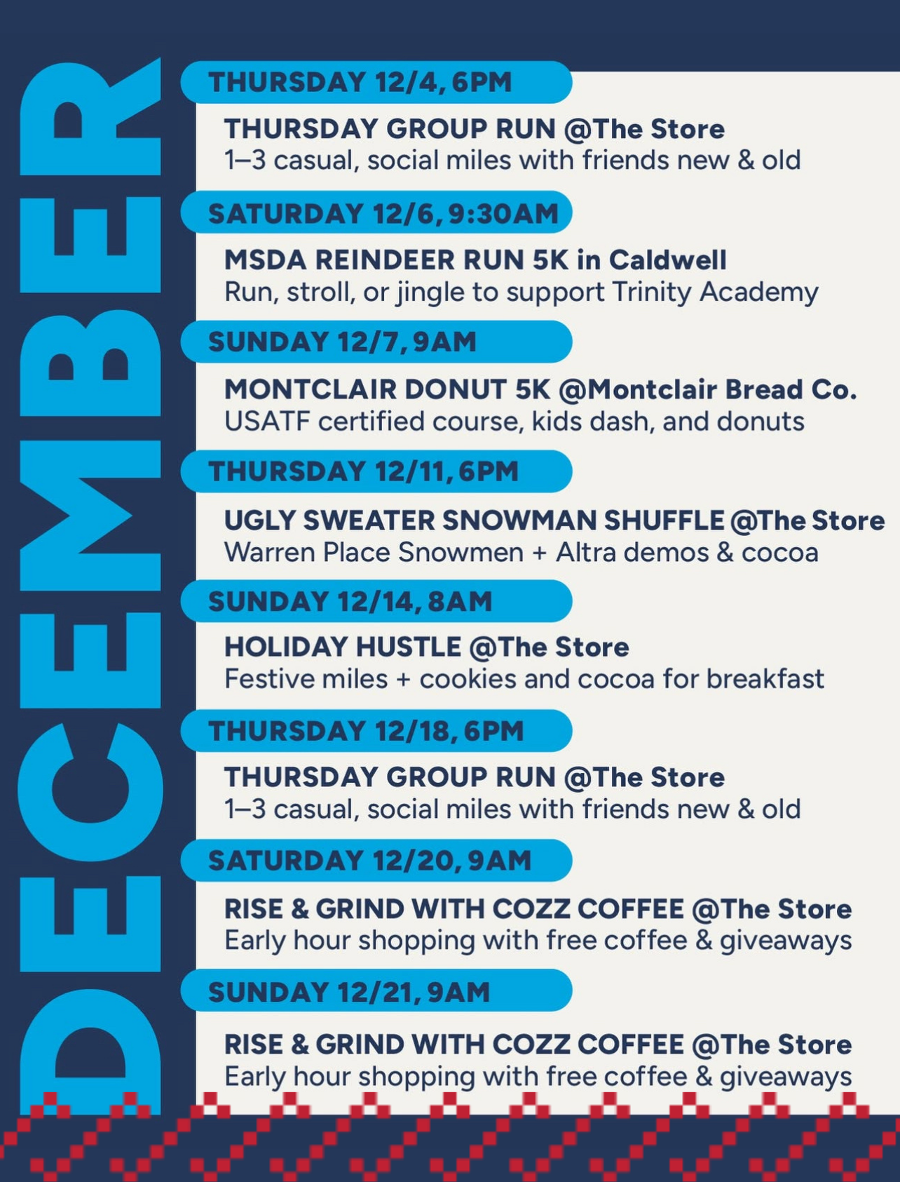 From the Ugly Sweater Snowman Shuffle Run to the Holiday Hustle, and Cozz Coffee Rise & Grind mornings - Let's Keep the Miles Merry!