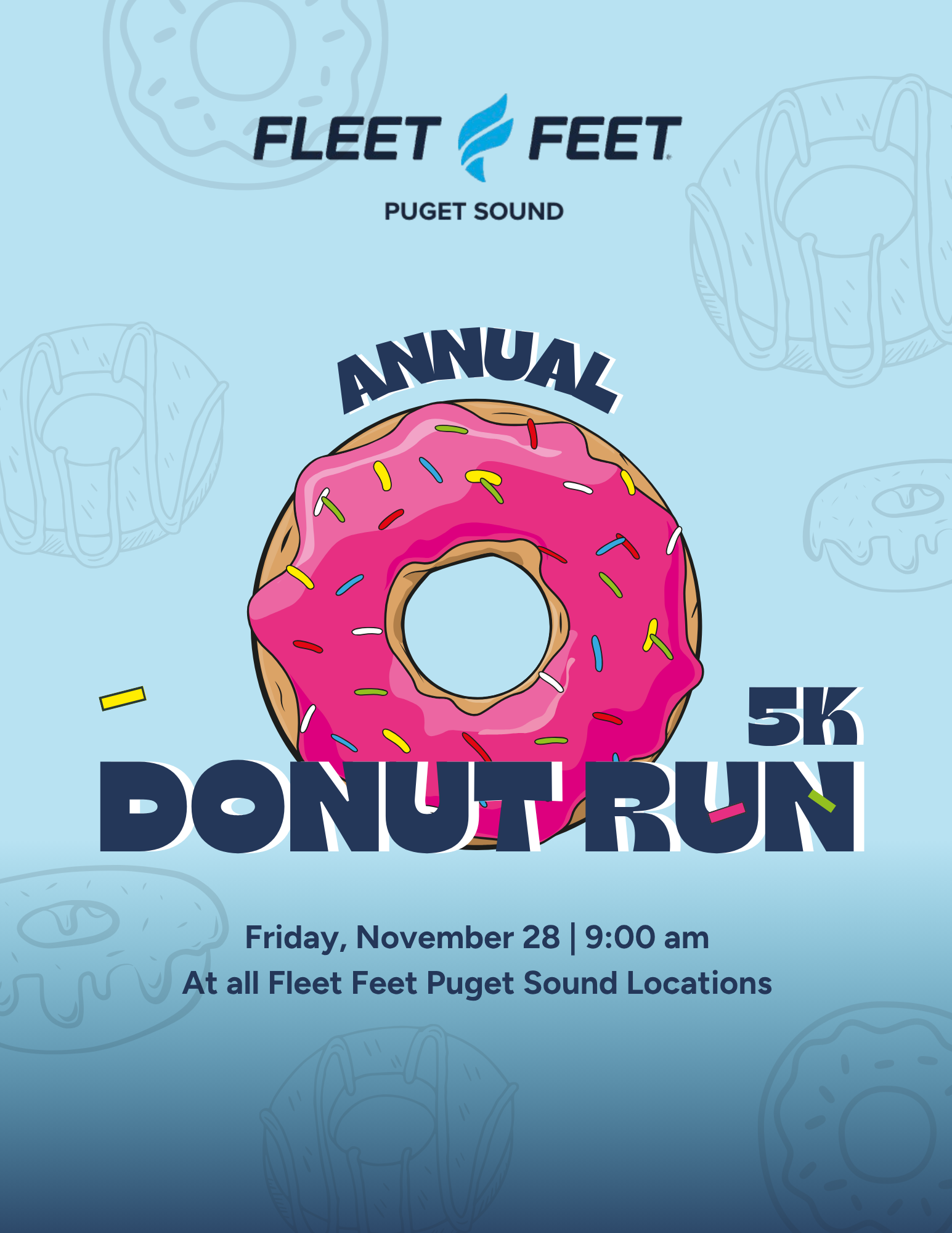Join us for our FREE First Annual Donut Run 5K - happening across all Fleet Feet Puget Sound locations!
