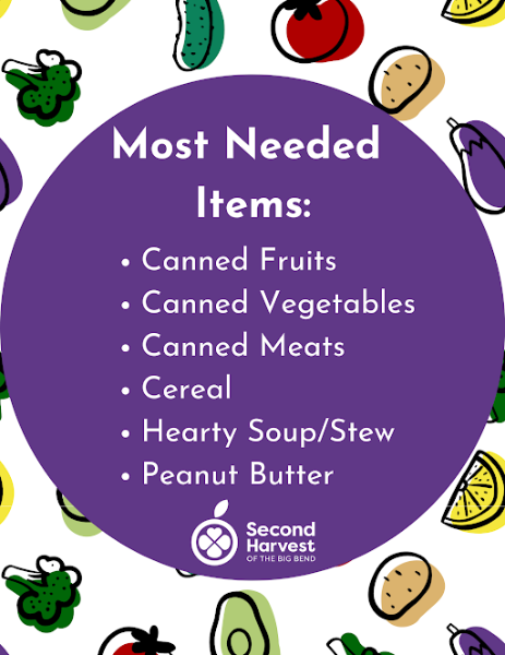 Participants will receive one (1) raffle entry for each eligible item donated to Second Harvest of the Big Bend through the designated donation collection at the hosting organization. There is no limit to the number of tickets a participant may earn. All entries must be submitted during the entry period listed above. Entries will be collected upon donation of items.