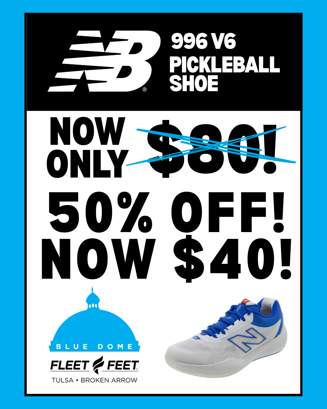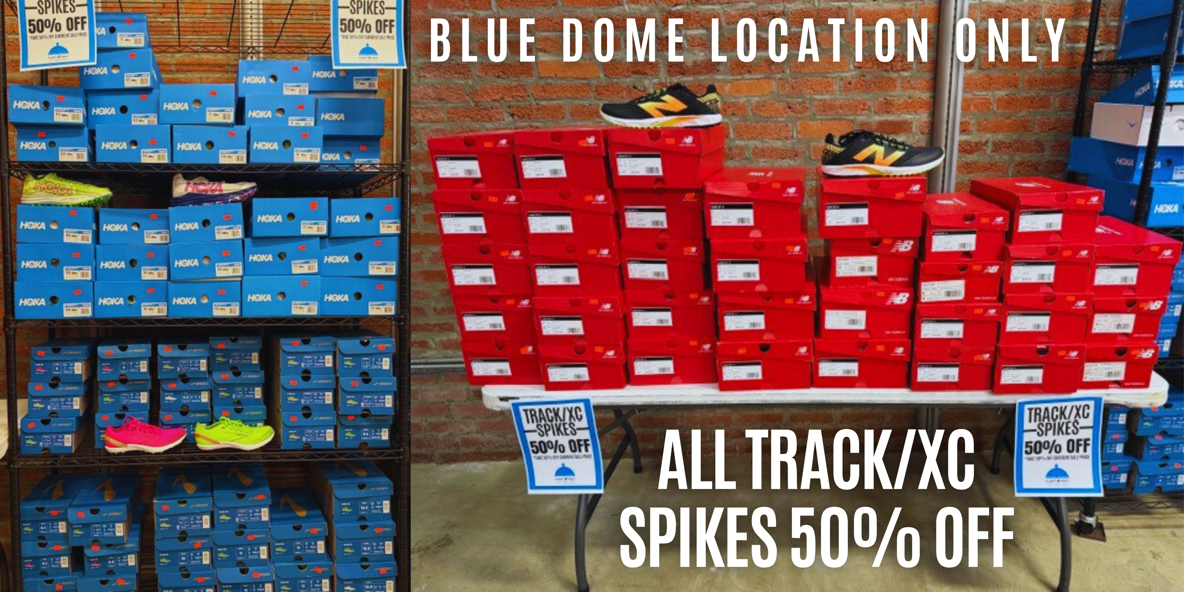 Through the end of February and while supplies last, we will close out older inventory at the Blue Dome location at 50% off the current sale price. We are stocking the Blue Dome location with a large range of shoes and other items, so selection will be good and the savings even better. We hope you can stop by to say goodbye to the Blue Dome location and pick up a great deal in the process.