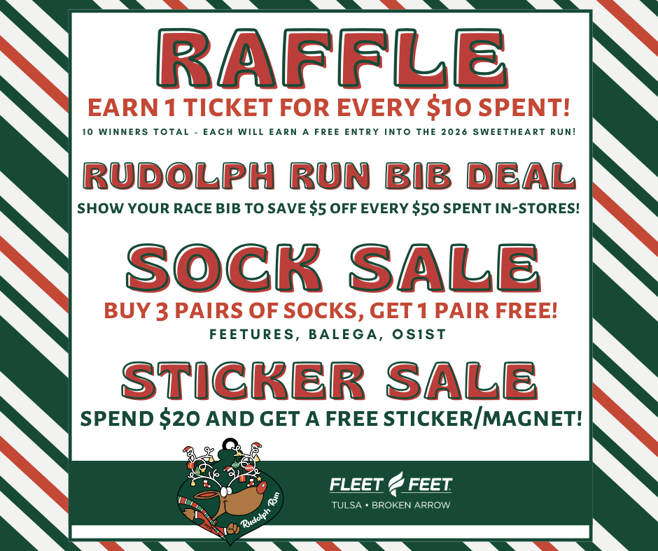 Packet Pickup will begin on Thursday, December 4, 2025 at all three Tulsa area Fleet Feet locations (Broken Arrow, KingsPointe Village and Blue Dome).