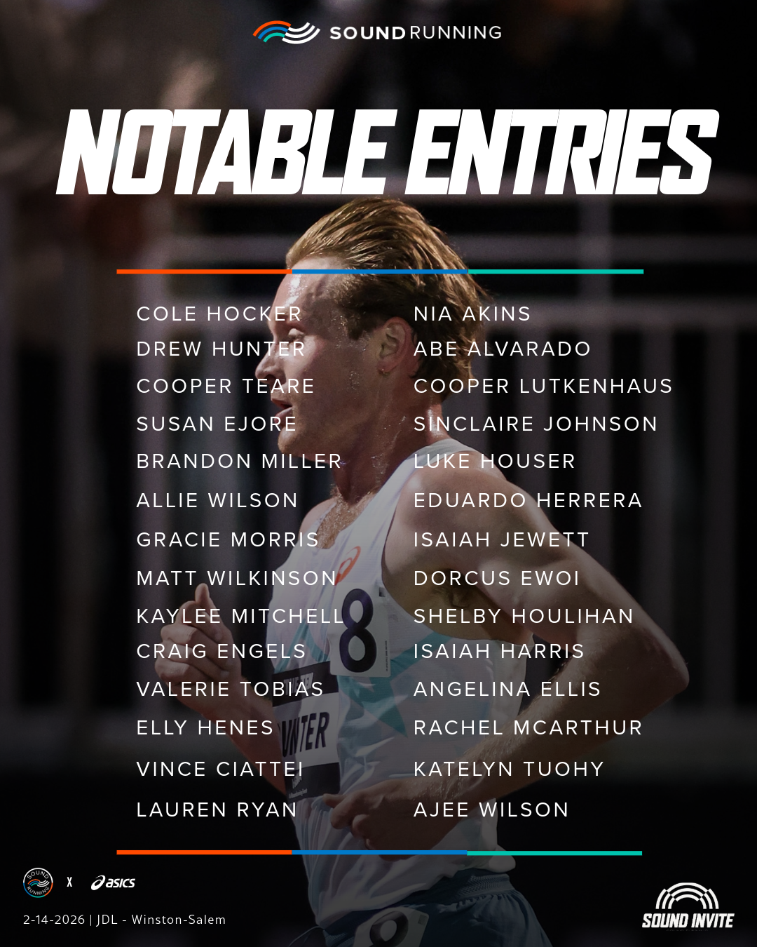 Buy tickets to the Sound Invite X Asics Indoor Meet at JDL Fast TrackSpectator tickets: $10VIP tickets with full food buffet and drinks post event: $197